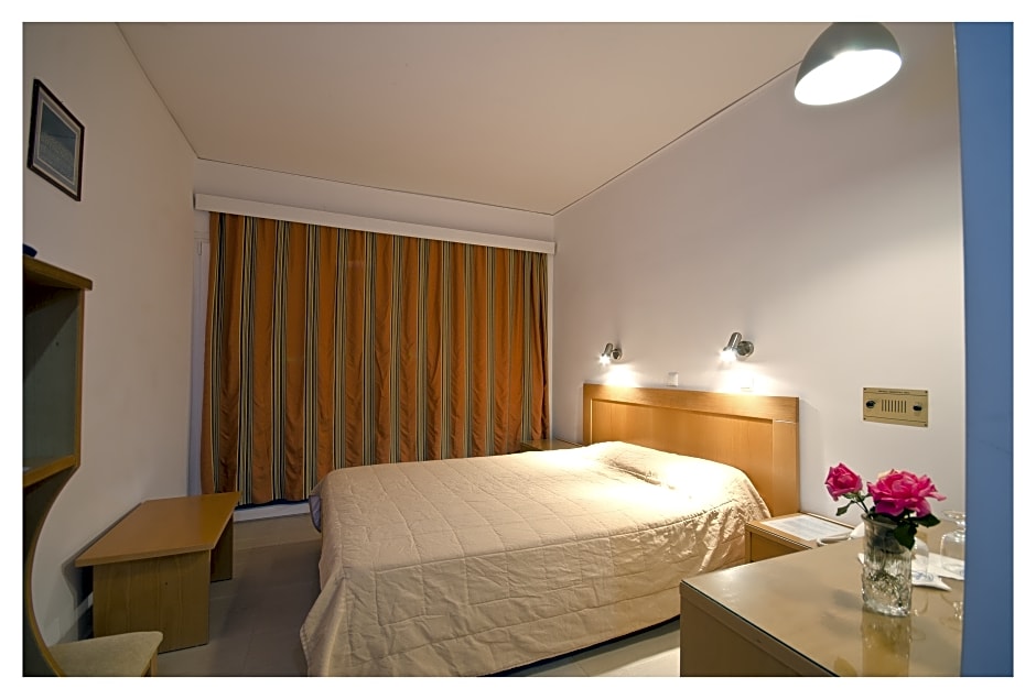 Modernly decorated room with air conditioning, satellite TV, refrigerator and balcony with view to the garden or the sea.